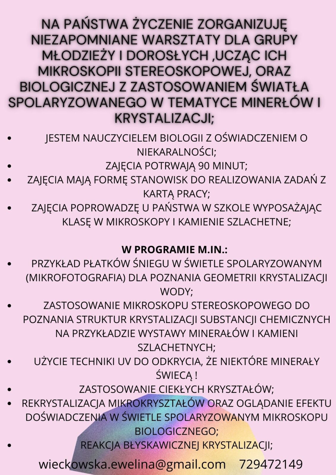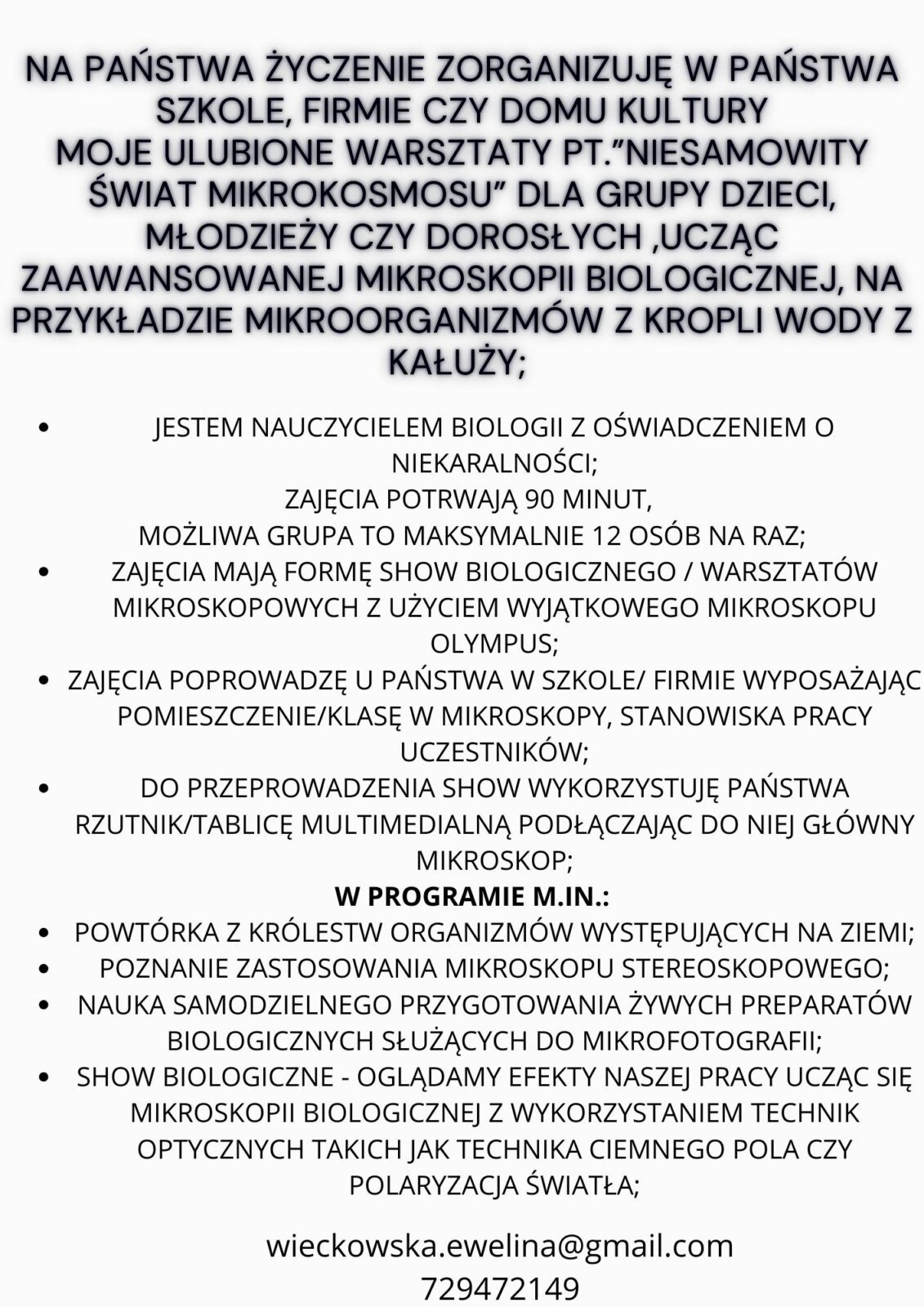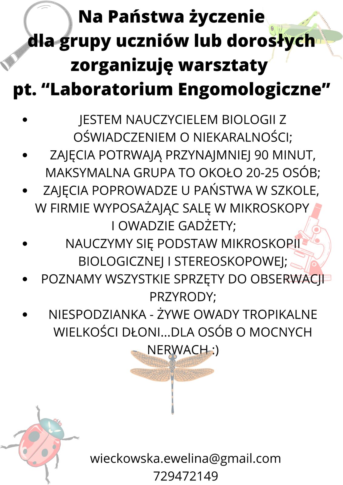 ZAPROŚ MNIE Z MOIM MOBILNYM LABORATORIUM MIKROSKOPOWYM NA NIEZAPOMNIANE WARSZTATY NAUKOWE